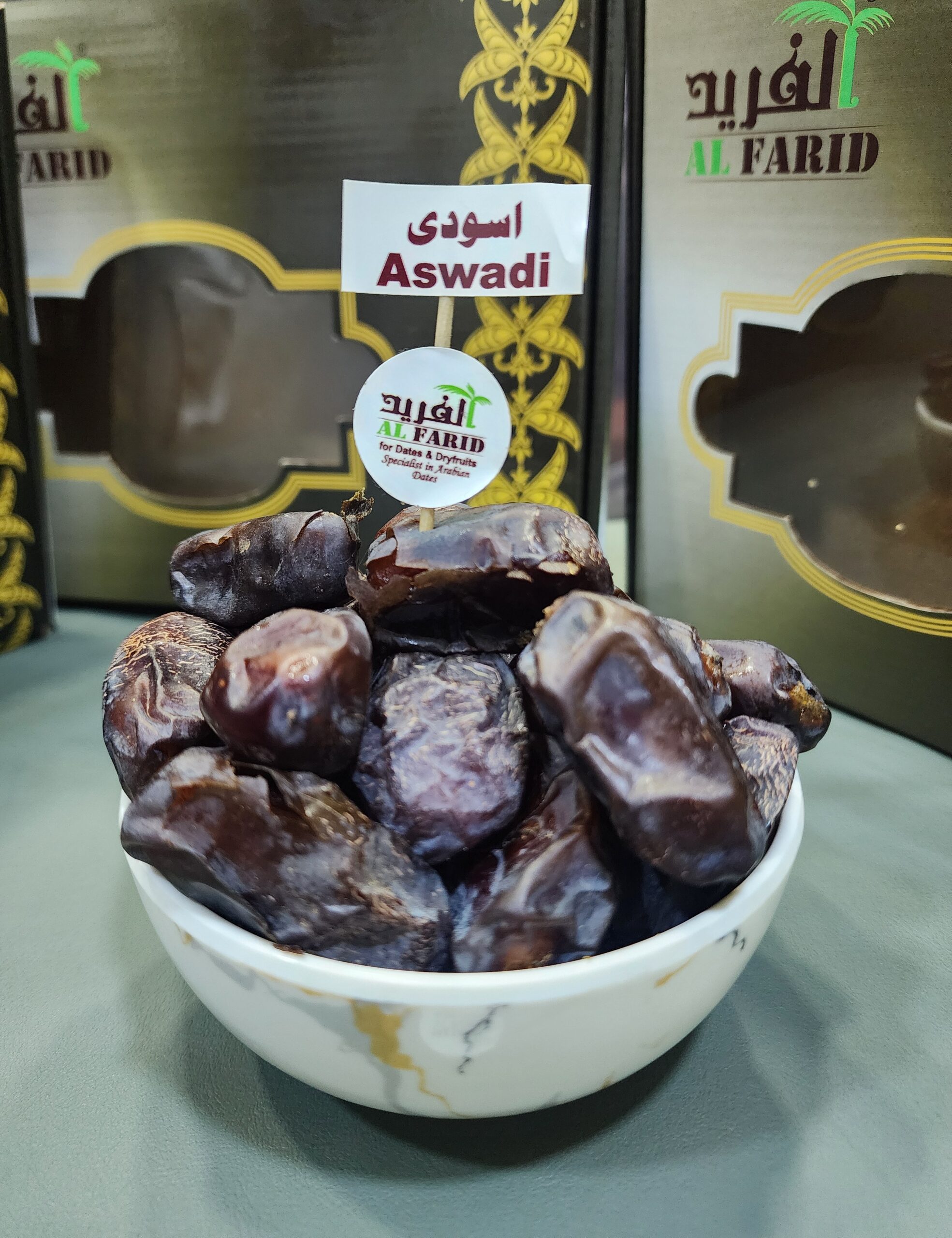Aswadi Dates are a prized variety from the Middle East, known for their dark color, tender texture, and rich, naturally sweet flavor.